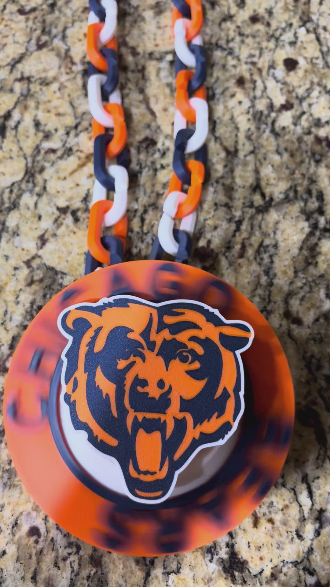The Chicago Bears Spinner Hype Chain is a 3D printed accessory designed for sports enthusiasts. Ideal for game days or viewing parties, this novelty item enhances the shared excitement of the event. Its durable construction ensures longevity, making it a reliable addition to your fan gear collection.