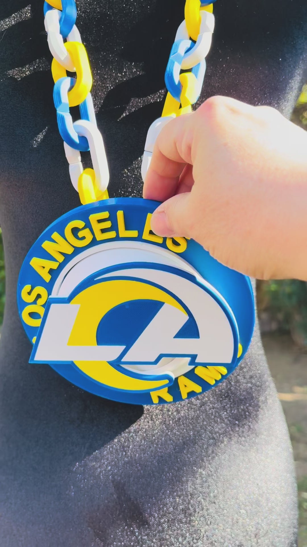 Get ready to spin into Rams fandom frenzy! This oversized 3D printed hype chain isn’t just for show—it's your new BFF for game day or viewing parties (because who doesn’t need a little extra flair?). Wear it, spin it, and let the good times roll as you cheer your team to victory!