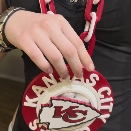Elevate your fan game with the NFL Kansas City Chiefs Spinning Hype Chain. This 3D printed chain will have you spinning with excitement at every game. Show off your super fan status in a fun and unique way with this must-have football accessory.
